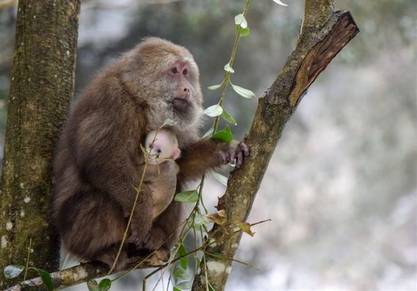 2月27日,黄山区汤口镇雪后初霁,三三两两的黄山短尾猴在林间嬉戏、觅食。黄山短尾猴是国家二级重点保护野生动物,在安徽主要分布于黄山风景区西南部,现有13个群体,近800只。
