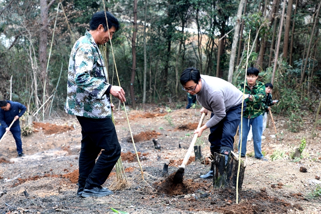 活动现场,志愿者们热情高涨,二三人一组,分工明确,兴致勃勃地投入到劳动中。他们有的挥锹挖坑、有的运苗扶苗、有的栽种填土、有的踩实浇水,每道工序都配合默契、干劲十足。经过共同努力,新植的树苗在微风中萌发着盎然生机。大家纷纷表示,虽然出了一身汗,沾了一身土,但能够用自己的双手为美丽家园种下“希望”,增添生机,感到非常高兴。据了解,此次栽种面积约4亩,栽种马褂木树苗500多株。