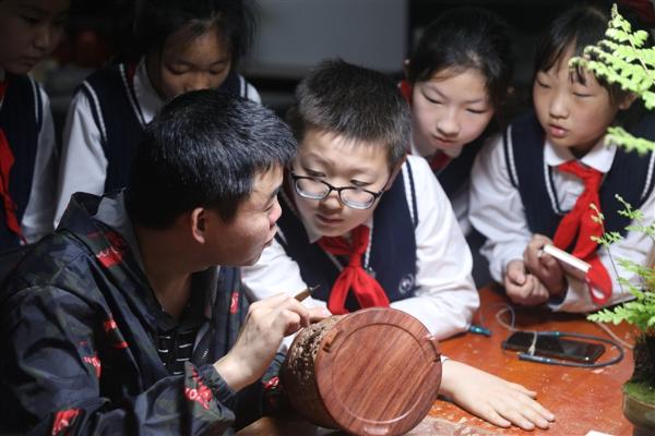 5月5日,在黄山高新区徽字号研学体验馆,屯溪现代实验学校师生近距离体验非遗竹雕的魅力。近年来,屯溪现代实验学校不断丰富“课内教学获新知”“课外实践拓视野”“研学体验合知行”学习路径,上好“徽文化+”科学实践课,致力打造学生最喜欢的科技教育实践园。