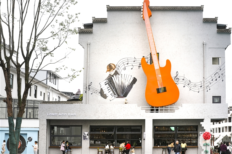 黑白两色的徽派民居变成多巴胺色彩,闲置的房子开上了咖啡吧、书吧,曾经土里土气的村部大楼变成了国际艺术家驻留中心,闲置的房屋变成了音乐酒吧,弃土场变成了露营地,农民新村变成了影溪河文创街……曾经名不见经传的长源村,在这个秋天突然走红,源于艺术的介入。
