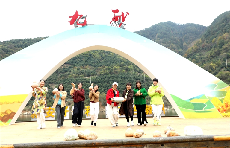 11月21日,歙县深渡镇九砂村,游客打卡新安江山水风光,用相机记录和美乡村新景,感受乡村的宁静和美好。