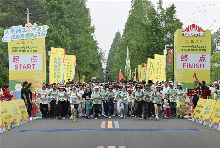5月18日上午,2025长三角绿水青山运动会齐云山霞客古道·登高赛在休宁县齐云山生态文化旅游度假区开赛。来自全国各地的近3000名登山爱好者,在“江南第一名山”的丹崖翠谷间上演“速度与激情”。