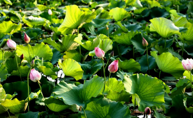 6月6日,歙县桂林镇境内的上海练江牧场, 6座水塘内的荷花盛开,初夏荷花绽放引来外地游客和本地市民前来赏花。
