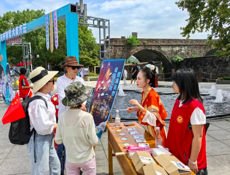 一张靓影美好回忆。“看这里!笑一笑!”在志愿服务点,“花仙子”和前来游玩的游客合影留念。背景中,悠悠横江水、古朴登封桥与游客的笑脸相映成趣。作为“一张靓影美好回忆”活动的核心区域,当地精心布置了打卡场景,“花仙子”不仅协助拍摄,还根据游客需求推荐最佳拍摄角度,时而客串“摄影师”记录全家福。