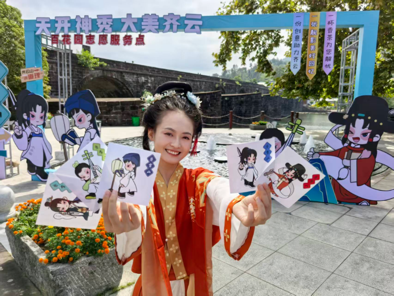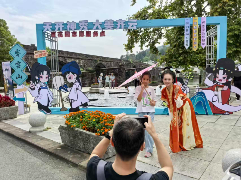 国庆中秋假期首日,休宁县齐云山以一场“古风新韵”的宠客模式迎接八方来客。创新推出百花园“花仙子”宠客服务,志愿者身着汉服化身“花仙子”,通过三大主题活动——“一份创意助力齐云”、“一张靓影美好回忆”、“一杯香茶为您解忧”,为游客提供沉浸式文化体验与贴心服务,首日活动获游客点赞如潮。