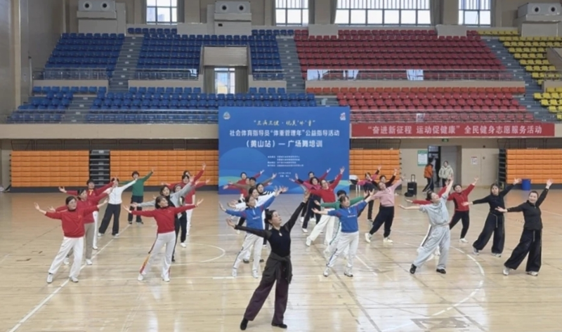 近日,安徽省社会体育指导员“体重管理年”公益指导活动(黄山站)在休宁县体育馆举行,市社会体育指导员协会组织专业老师开展广场舞公益教学。