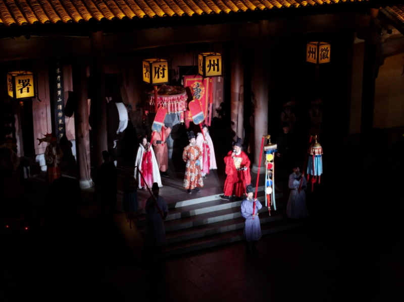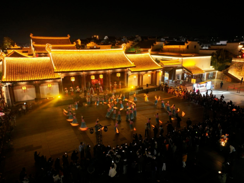 12月19日晚,歙县徽州古城内,来自瞻淇村和汪满田村的鱼灯巡游队伍在古城街巷中摇曳穿梭、次第舞动,光影交织间,吸引众多游客驻足观赏。