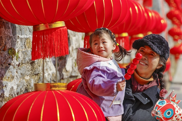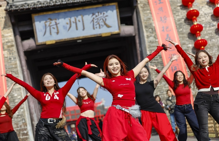 临近新春佳节,歙县徽州古城张灯结彩,一串串大红灯笼与一副副徽州楹联点缀着古城墙,处处洋溢着喜庆的节日氛围,吸引众多市民与游客前来感受浓浓的徽州年味。