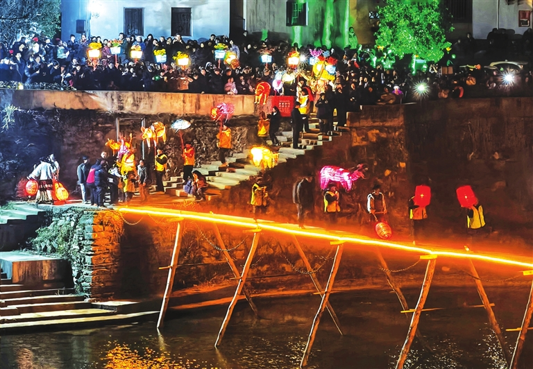 2月11日,农历小年,歙县昌溪村传统民俗舞花灯精彩亮相,吸引众多游客纷至沓来。昌溪花灯历史可追溯至南宋,是当地标志性民俗活动。此前,该项活动已停办了10多年。今年,当地提前组织,制作花灯,设计巡游线路,再现“灯影映古村、流光绕巷陌”的盛景。