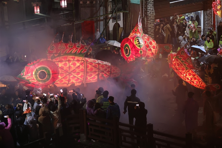 3月1日,歙县溪头镇汪满田村上演一年一度的“嬉鱼灯”。元宵节将至,村民在丰富多彩的特色民俗活动中喜迎佳节。