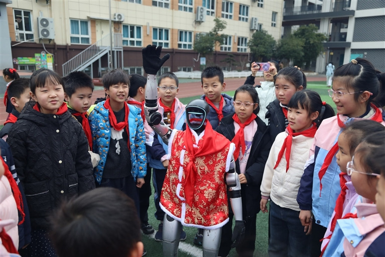 3月9日上午,新学期刚刚开学,在屯溪现代实验小学内,人形机器人与同学们近距离互动、演示动作,新奇有趣的科技体验让孩子们大开眼界,在心中播下热爱科学、探索创新的种子。