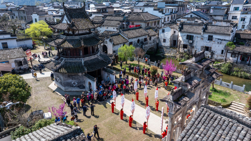 揭牌仪式后,来自黄山市、安庆市短视频和微短剧协会的120名视频创作者前往许村景区采风。大家用镜头记录古村风貌,也肩负着为歙县摄影经济“探路”的使命。五马坊广场上,女子大刀灯舞上演,舞者手持大刀灯,或高举过顶,或低回婉转,尽显民俗韵味。视频创作者们或仰拍或俯身捕捉细节,无人机在头顶盘旋,多角度记录这场民俗盛宴。古村的静谧与创作的热烈交织,一幅以影像赋能乡村振兴的画卷正在春天里徐徐展开。