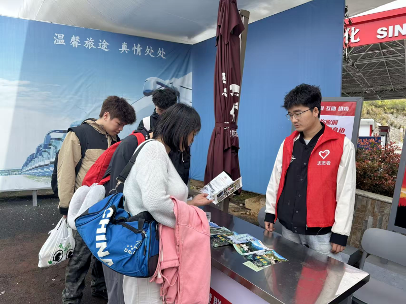 4月4日,黄山区汤口镇在新国线换乘中心设立志愿服务台,志愿者耐心为游客解答换乘路线、景区预约、周边食宿等疑问,以暖心服务保障假期旅游秩序。