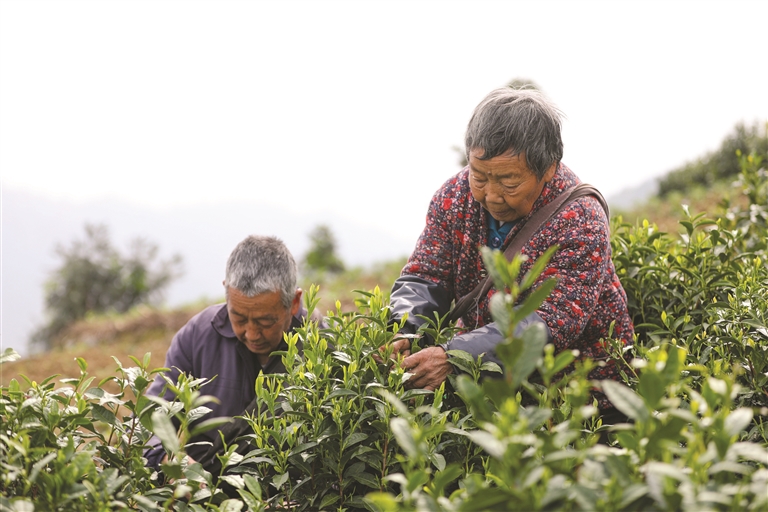 4月17日,“寻茶赴春约 茶香漫春山——2026歙县滴水香推介季”活动在溪头镇横心岭举行。活动集品牌推介、项目签约、表彰授奖、斗茶启动、座谈交流于一体,全面展现滴水香产业发展新成果。图为滴水香茶园开园采摘。