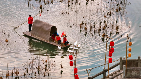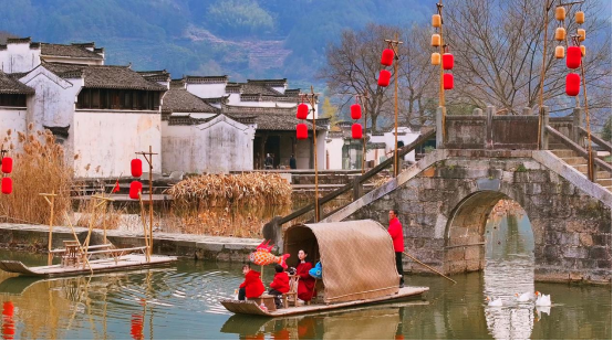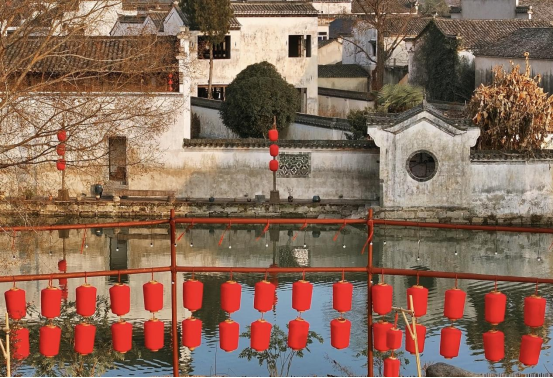 近日,徽州区呈坎景区内挂满了红灯笼,将整个景区装点得喜气洋洋,新年氛围浓郁。