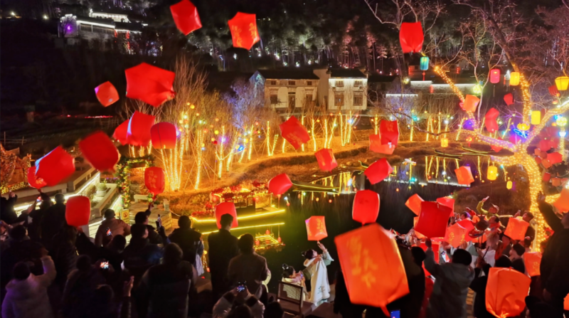 2025年12月31日,“天上金灯会·灵山满池娇”金灯迎新活动在徽州区大灵山旅游度假区举行。·洪愿·