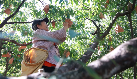 村民江海峰欣喜地分享:“我们的水蜜桃品质好,村里环境也优美,游客越来越多了。我们的水蜜桃根本不愁卖,就在家门口的大树底下摆个摊,每天百来斤轻轻松松地卖完”。