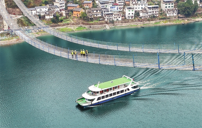 11月13日,歙县新安江小川跨江大桥左右主塔通过空中“猫道”实现连接,标志着大桥正式转入桥面施工阶段。
