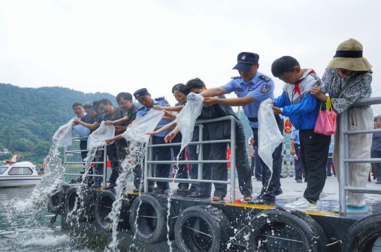 涵养“水生态”。污水治理。先后建成158座污水处理站,用以解决生活污水无序排放问题。完成改厕1.5万余户,沿江覆盖95%以上。2023年接收船舶生活垃圾约26.188吨,船舶生活污水约1206立方米,含油污水约0.48立方米。以鱼护水。2020年新安江启动十年禁渔,全县1247名渔民全部退捕上岸,共退养网箱5223只。相关部门签订项目对水产种质资源保护区影响的生态补偿协议,守住水产种质资源保护区生态红线。持续在新安江流域实施增殖放流活动,截至目前歙县已连续增值放流20年,投入资金600余万元,投放鲢鱼、鳙鱼、草鱼、鳊鱼等夏花及冬片鱼种鱼苗累计超过1亿尾。