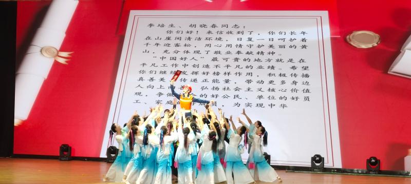 礼赞新时代,舞颂“守护者”。国庆前夕,“永远跟党走”全省老干部系统文艺汇演落幕,黄山市老年大学姚芭金老师创编的舞蹈《一封回信》荣获最佳节目奖。该作品以习近平总书记给 “中国好人” 李培生、胡晓春的回信精神为创作灵感,以二人长年在黄山山崖清洁环境、守护迎客松的感人事迹为原型,通过舞蹈语言生动展现平凡岗位中的不凡奉献精神。