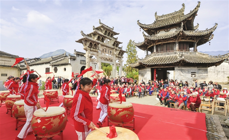 今年重阳节,歙县许村镇组织百余位八旬以上老人共庆佳节。郑宏/摄