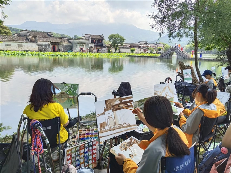 北枕黄山,南望白岳,有“中国明清古民居博物馆”“中国传统文化的缩影”之称、“桃花源里人家”“中国画里乡村”之誉的黟县,持续推进“旅游+写生”,吸引各地美术生和艺术家前来写生,成为各大美术院系的写生基地。宏村、西递更是成了中国十大写生基地之一。