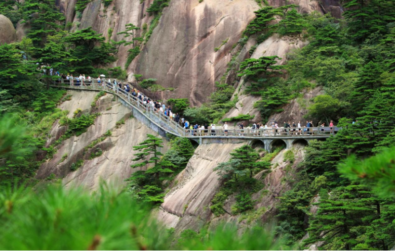 暑期以来,黄山风景区迎来暑期游、亲子游、避暑游等客流高峰。8月2日,游人行走在山林之间感受夏日黄山的清凉。