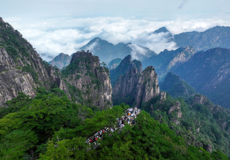 国庆中秋长假,黄山风景区广泛应用科技手段赋能管理,开展无人机常态化定航智能巡查,间歇播报安全文明提示,遇极端天气可实现提前预警;景区保护管理指挥调度中心强化数字化智能监测与数据分析能力,对游客集散地及易堵区域实施动态监测,帮助游客科学规划游览路线,进一步提升游览体验。