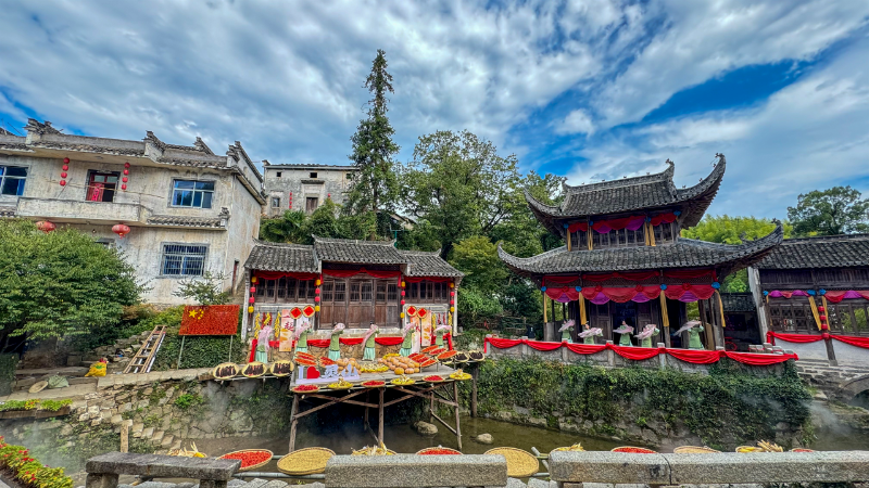 徽州区灵山村,晒秋盛会悄然启幕。天尊阁前,灵金溪畔,圆圆的晒匾中盛放着整个秋天的馈赠:金色的玉米、赤红的辣椒、澄黄的南瓜,与粉墙黛瓦相映,吸引不少市民游客拍照打卡。·范凤娇 方舟·