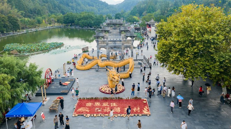 10月3日,黟县各景区人气十足。游客走进黟县乡村,在国庆假期中感受徽州乡村秋日的独特韵味。·汪澄·