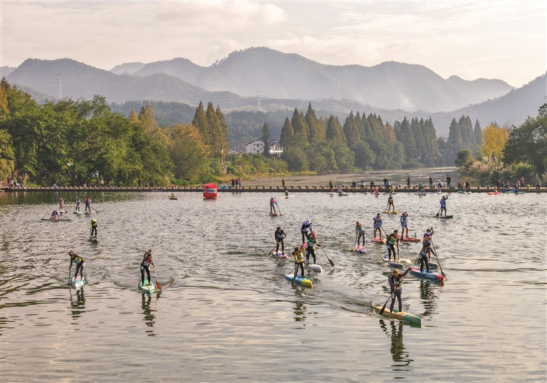 10月25日,2025年安徽省桨板公开赛在休宁县齐云山生态文化旅游度假区开赛。来自安徽省及长三角地区的20余支代表队近200名运动员参加。