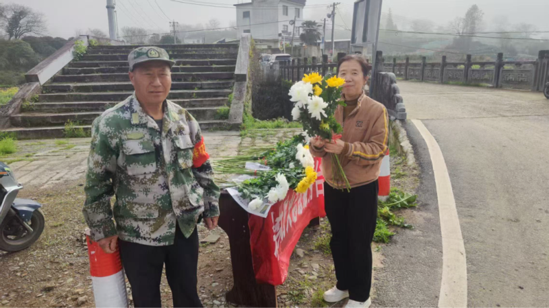 清明节期间,徽州区呈坎镇设置森林防火志愿服务台,向过往村民普及森林防火知识,倡导以鲜花祭祀替代焚香烧纸,累计兑换鲜花800余束。·叶慧慧 王翀·