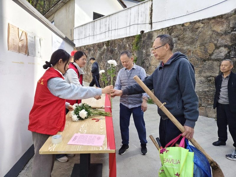 4月5日上午,屯溪区昱中街道徽山路社区新时代文明实践站组织开展“绿色清明 文明祭扫”清明节主题活动,通过用鲜花换纸钱的方式,引导居民转变祭扫观念,用低碳方式寄托哀思。·方晓钰·
