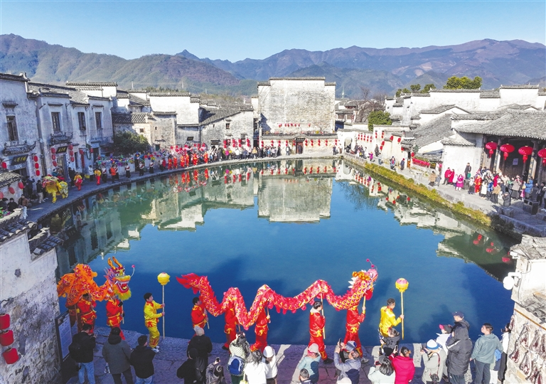 每到节假日,我市各地的古村落便会人气高涨,西溪南的“绿野仙踪”、唐模的“鳌鱼飞天”、呈坎的“八卦迷阵”、宏村的“画里乡村”……不少古村落凭借独特的风貌、鲜活的业态和厚重的底蕴成功出圈,成为备受年轻人青睐的打卡地。